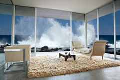 Ici, les caractéristiques artistiques de la moquette illustrent la façon dont les opposés (nature brute contre confort du foyer, intérieur contre extérieur) s’influencent mutuellement pour se fondre l’un dans l’autre dans des motifs et des techniques de fabrication modernes.