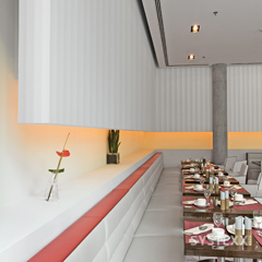 Autre atout, les caractéristiques fonctionnelles de Systexx Premium offrent une très grande diversité d’utilisations. Les revêtements muraux en verre de cette gamme expriment toute la mesure de leur polyvalence dans les hôtels où les architectes utilisent le même système de la cave au penthouse, en passant par les chambres, les suites, la réception, les salles de séminaires, le restaurant, les couloirs, les cages d’escalier, les salles de bains... tout en variant à l’infini la palette des couleurs et les effets appliqués.