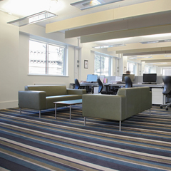 La moquette « Spice Route », qui est associée à des dalles de moquette d’une couleur customisée, également fabriquées par Christy Carpets, a été choisie dans le coloris Kashgar par le cabinet Hawkins/Brown installé à proximité de l’Université d’Oxford.