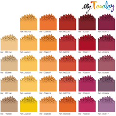On peut choisir les granulés parmi plus de 150 coloris mats ou nacrés. En fonction des 4 décors de base, il est possible de panacher 1 ou 3 couleurs de fond avec 1 ou 2 touches d’accents et /ou 1 coloris de marbrage. A titre d’exemple, à partir du décor initial Brazilia, il est possible de créer son harmonie en choisissant 1 couleur de fond et 2 touches d’accent.