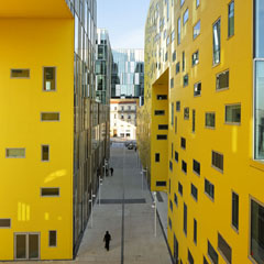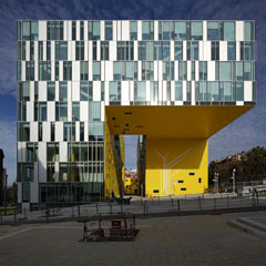 Le bâtiment R+9 émergeant du coeur d’îlot, permet non seulement de "sculpter" la silhouette de cette partie du quartier, mais surtout de chercher des vues lointaines, d’établir des rapports avec le grand paysage et d’offrir ainsi des logements de grande qualité. De larges balcons filants ceinturent les appartements dont les salons disposés aux angles bénéficient d’une double orientation».