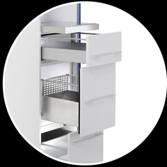 Rangement multifonction Le premier tiroir dispose d'un espace suffisant pour accueillir : café, thé, sucre, chocolats et tout ce dont vous avez besoin pour une pose détente de qualité. Le second tiroir offre un volume plus important qui permet de stocker les réserves de consommables.