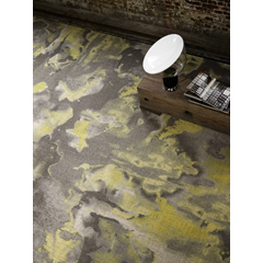Interprétation abstraite, les nuances de couleurs sont rehaussés par les fils métalliques intégrés dans la texture bouclée multicouches pour une réflexion inédite de la lumière.