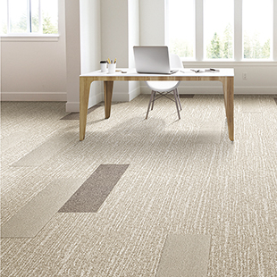 - Canopy To Bark : Avec des motifs graphiques inspirés des troncs et écorces, cette lame structurée fait naître de nouveaux détails sur les sols des espaces tertiaires. Composée à 100% de fils recyclés Econyl, cette moquette en plus d’être résistante à la décoloration, préserve l’environnement.