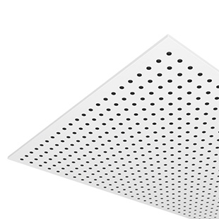 Proposée avec des plaques de plâtre lisses, la nouvelle solution de plafond chauffant rafraîchissant de Zehnder est également disponible avec des plaques de plâtres perforées (perforations rondes ou carrées au choix) garantissant une absorption acoustique élevée (coefficient d’absorption acoustique pondéré conformément à la DIN EN ISO 11654 jusqu’à αw = 0,5 selon le type de perforation).