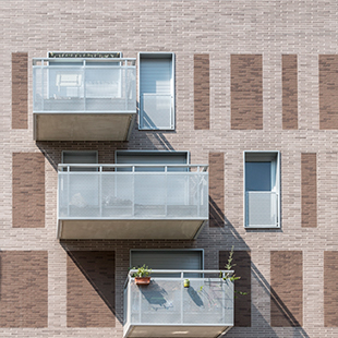 Mixité des systèmes de bardage StoVentec SCM finition StoBrick et d’ITE StoTherm Brick finition parements de terre cuite ©Manuel Panaget