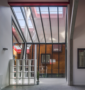 Avec ses charnières invisibles, le tout nouveau système SlimLine 38 aux profilés d’une finesse exceptionnelle laisse pénétrer la lumière dans une recherche de transparence d’ambiance industrielle. Disponible en trois versions (Classic, Cubic et Ferro) de design différent, la Slim Line 38 met en valeur l’architecture avec d’excellentes performances. Pour Serge Tanguy, chargé de prescription chez Reynaers Aluminium France, cette réhabilitation s’illustre avant tout par l’utilisation du tout nouveau système SlimLine 38 aux profilés d’une finesse exceptionnelle dans un "esprit acier" pour reprendre ses mots. Une rythmique très lisible, une finition sablé/noir granité, sans oublier une optimisation financière de poids, ont convaincu les architectes.