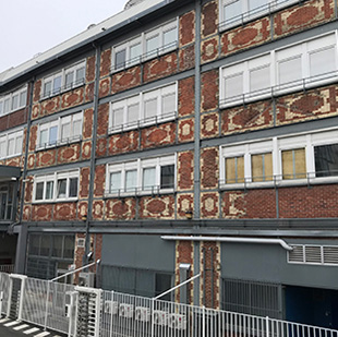 Fiche technique Type de bâtiment : locaux d’activité Localisation : rue du Moulin des Bruyères, 92400 Courbevoie Surface de façade traitée : 1 800 m2 Maître d’ouvrage : Copropriété représentée par NCG Immobilier Maître d’œuvre : Atelier d’Architecture Alter Ego Entreprise applicatrice : Béchet Durée du chantier : juin 2018 - juin 2019 Solutions utilisées : Bardage ventilé StoVentec SCM avec finition StoBrick et isolation thermique par l’extérieur StoTherm Brick finition parements de terre cuite