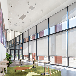 Confectionnés puis installés pendant la phase de travaux sur une surface de 11 000 m², les stores participent aux économies d'énergie du bâtiment et au confort des occupants, dans les différents espaces de restauration, de co-working ou de bureaux.