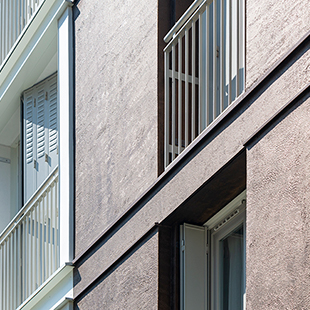 Enfin, les garde-corps qui présentent une partie en maçonnerie abîmée seront revêtus d’un enduit D3 armé Stolit MP à la finition lisse dont la couleur gris soutenu justifie l’apport de la technologie X-black. Cette dernière permet d'appliquer une teinte soutenue sur ITE et support type béton (ou autre) avec un coefficient de luminosité en accord avec la réglementation.