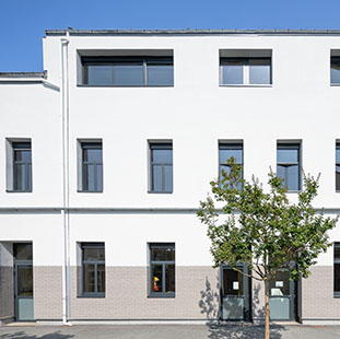 « Outre l’amélioration de la performance thermique des bâtiments, ces travaux visaient à harmoniser des façades hétérogènes aux couleurs différentes. Le blanc et le gris apportent l’unité recherchée. En soubassement, les briquettes protègent le mur des chocs inévitables dans une cour d’école et leur matériau, plus souple que la terre cuite, présente un contact plus doux pour les enfants. » Yves Parent, architecte agence Mûrisserie