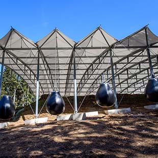 Afin de maintenir la stabilité de l'ensemble de l'ouvrage, une série de lests en béton de 2 tonnes chacun vient compléter l'équilibre de la structure. Le coffrage des lests a été réalisé en toile Flexlight Classic 942 S2.