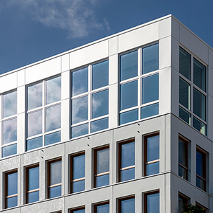 Le système de bardage StoVentec SCM avec finition Glass Mosaïc a permis d’habiller un bâtiment R+8 à structure mixte bois-béton et façade à ossature bois.