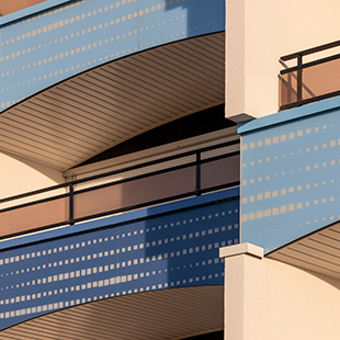 En fonds de balcons, pour éviter une emprise trop importante du complexe isolant, le système StoTherm Resol est choisi. La laine de roche est remplacée par des panneaux rigides de mousse phénolique afin de ménager l'emprise de l'ITE sur la surface du balcon.
