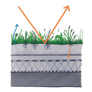 SOPREMA favorise le pouvoir évapotranspirant des végétaux en toiture-terrasse, permettant ainsi de rafraîchir les pièces. La photosynthèse des végétaux permet de consommer l’énergie solaire et de secréter l’eau puisée par leur racine, créant ainsi un aérosol rafraîchissant. Cette transpiration végétale provoque un effet rafraîchissant très puissant, agissant comme un climatiseur naturel. Ce mécanisme agit à différentes échelles : pelouses, prairies, parcs, toitures végétalisées.