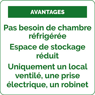 - Avantages pratiques : Très simple d'installation et d'utilisation. Très peu de contraintes techniques (un local ventilé naturellement ou VMC, une prise électrique, un robinet). Faible encombrement.