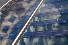 Les cellules photovoltaïques sont prises en sandwich entre deux panneaux en verre de sécurité. Ces modules préassemblés sont enchâssés dans des armatures en aluminium dotées d’isolants thermiques incorporés et de connecteurs intégrés qui assurent l’acheminement de l’énergie électrique produite.