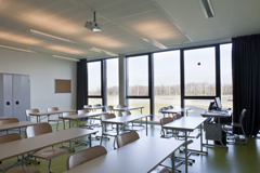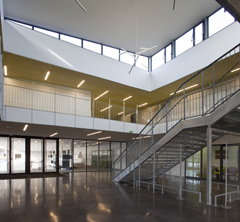 De larges baies vitrées et des profilés SOLEAL permettent d’habiller les salles de classes, le hall d’entrée et l’espace de restauration. Des brise-soleil sont installés sous forme de casquettes sur l’aile sud et à l’horizontale sur la façade ouest.