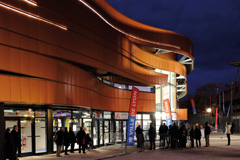 La façade en belvédère sur l’esplanade participe à l’animation urbaine. C’est une véritable vitrine de l’athlétisme qui met en scène et intègre le sport dans l’espace urbain, qui s’anime ainsi de jour comme de nuit.Le bâtiment est sculpté dans un volume unique : façades et toiture composent un ensemble, dans une continuité volumétrique et de couleur.