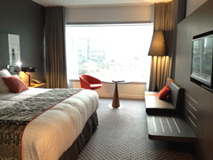 L’Hôtel comprend au sommet un centre fitness, ainsi qu’un Bar offrant une vue panoramique sur Paris. Dans sa partie inférieure, se côtoient le lobby, les salons d’attente, une Grande Salle de banquets ainsi qu’un restaurant. A son niveau le plus bas, côté rue, se situe l’accès des taxis ainsi que les places de stationnement. |