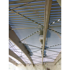 Les ondulations de toiture permettent d’intégrer parfaitement le bâtiment dans son site pour une perception qualifiante depuis la route et depuis la berge sud du fleuve.