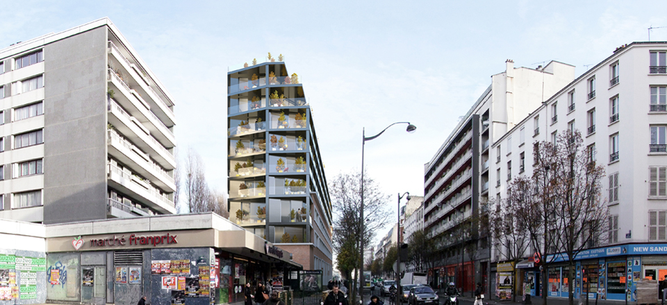 La rue Ordener, étroite tel un canyon, débouche sur ce territoire ferroviaire et devient un balcon panoramique. C’est justement à ce passage, du canyon au balcon, de la densité au paysage, que le projet se situe. Il doit donc s’adresser à la fois à la ville dense et au grand paysage.