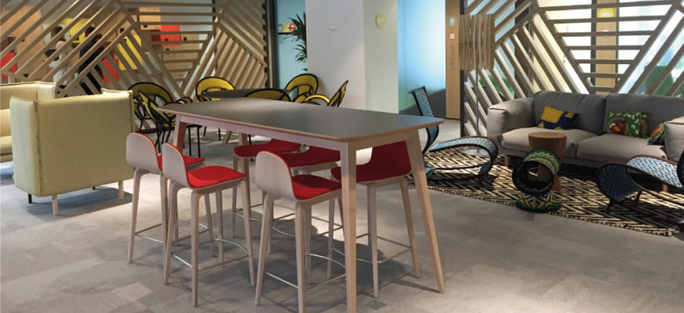 Chez Danone, on voyage entre moments de détente, ambiance de travail zen, espaces de réunions cosy et meeting sérieux, tout ça caché derrière une vitrophanie gourmande et exotique.
