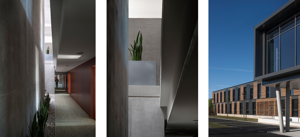 Le parti structurant du projet propose une extension dans la continuité du bâtiment existant. La morphologie du bâtiment créé privilégie l’éclairement naturel des bureaux grâce à l’optimisation du linéaire de façade.