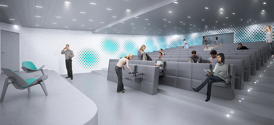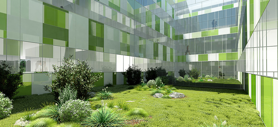 Le projet architectural s’articule autour d’un nouvel atrium et d’un patio planté. Les locaux du rez-de-chaussée sont dédiés à l’accueil du public et comprennent des espaces d’accueil, des salles de réunion et un auditorium.