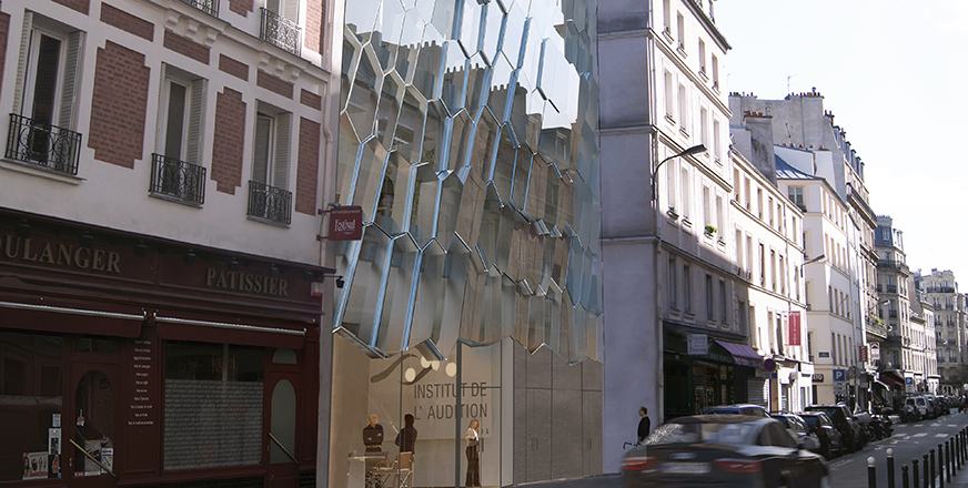 Programme : Réhabilitation d’un immeuble existant pour accueillir l’Institut de l’Audition qui regroupe un lieu d’accueil, d’orientation et d’information du public avec un Centre de Recherche d’excellence dans le domaine des maladies et malformations auditives.