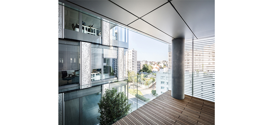 Souvent exclu de la typologie classique des bâtiments de bureaux, nous avons choisi d’insérer des aspérités, des lieux appropriables supports d’autres usages. Il s’agit de trois loges creusées dans l’ordre horizontal mis en place. Elles accueillent trois jardins suspendus qui redéfinissent d’une part, l’échelle urbaine du bâtiment, et d’autre part introduisent une échelle intermédiaire dans le bâtiment lui-même. Les Jardins suspendus deviennent un symbole de l’engagement urbain du bâtiment.