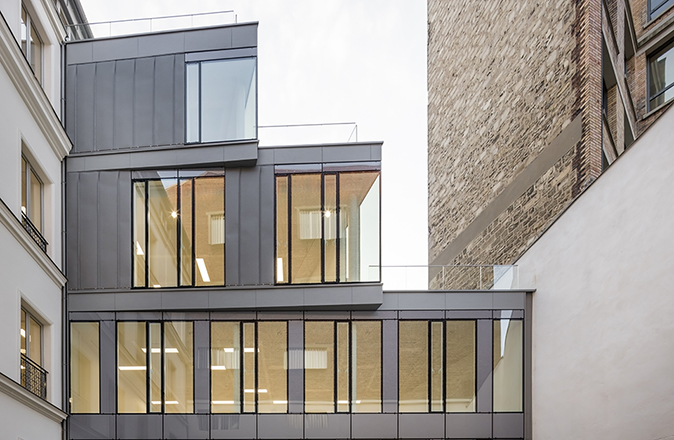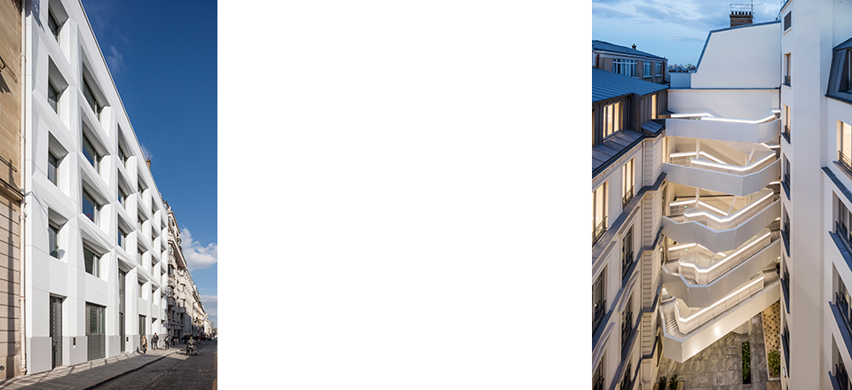 L’agence Axel Schoenert a proposé pour chacun des trois bâtiments une approche différente, selon leur typologie respective : un bâtiment de 1930, un hôtel particulier de 1840 et une ancienne écurie du XIXe siècle. Cela a donné lieu à la réalisation d'un bâtiment neuf et à la rénovation et restructuration lourde de deux bâtiments historiques.