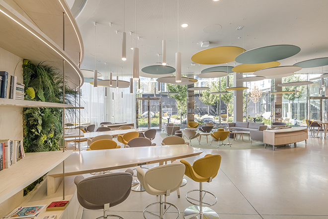 Les espaces sont organisés en flex-desk par équipe projet, permettant de conserver la cohérence des chaînes de valeurs. Les postes proposés s’adaptent aux différentes typologies du travail moderne – travail courant, collaboration, concentration, détente, etc. Ainsi, 600 postes sont proposés pour 800 collaborateurs.
