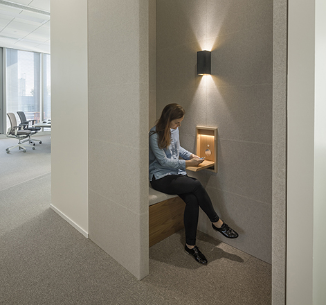 Profitant du cadre exceptionnel qu’offre le bâtiment, en continuité de la vision de l’Agence sur les « espaces à vivre », ce travail a permis au client et à ses équipes de sortir de l’image d’espaces de travail standardisés et impersonnels du passé pour entrer de plain-pied dans le bureau de demain.