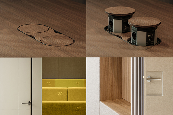 À l’écoute, les équipes 2/3/4/ ont donc travaillé pour offrir un design personnalisé répondant aux souhaits des utilisateurs, par l’utilisation de matériaux chaleureux et intemporels – Orme, laine vierge, végétation, et le soin apporté au dessin de mobiliers et agencements « sur mesures ».