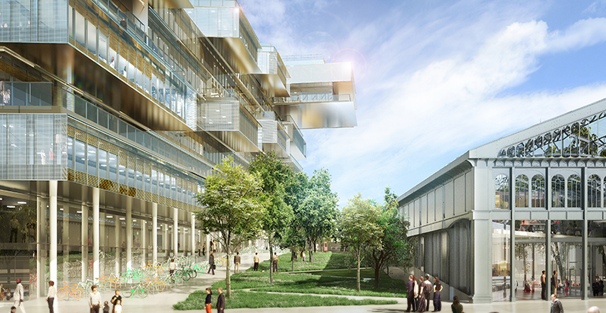 L’utilisation de matériaux choisis pour leur esthétique brute (bois, métal, pierre, béton...) tend vers la simplicité pour créer un environnement de travail serein et inspirant pour les quelques 5 000 collaborateurs et visiteurs qui occuperont les lieux. Revisitant les codes de l’immobilier de bureau pour placer l’humain au centre du projet, Bridge est constitué essentiellement d’espaces de travail sur 10 niveaux avec pour ambition d’offrir la meilleure "expérience salarié" possible. La Halle Eiffel abrite pour sa part des espaces de coworking, commerces et restaurants accessibles au public. |