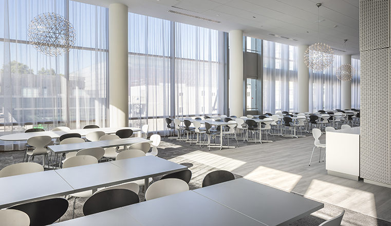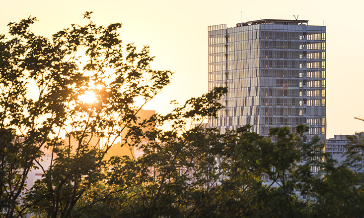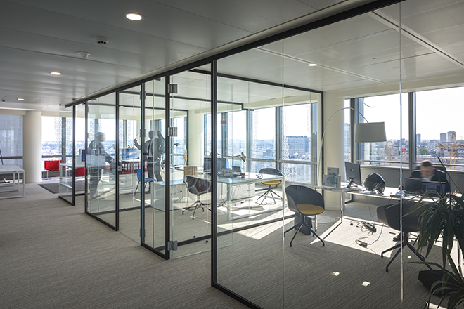 - Une façade vitrée double peau libre de tout allège, améliorant notamment la thermique, et le confort d’éclairage naturel.