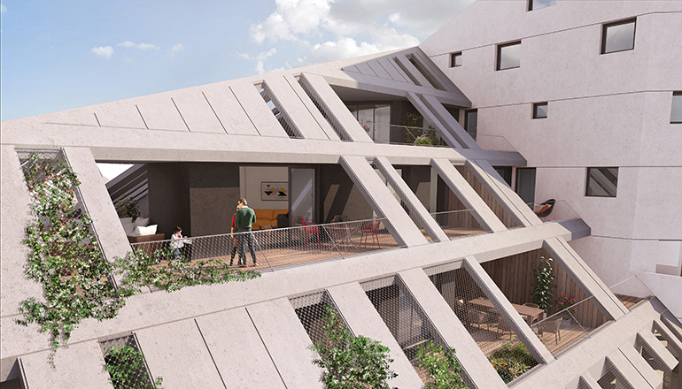 Le programme de l’Annexe se dessine en son sein comme un lieu de vie résolument moderne, profondément durable et multi-fonctionnel. Il nous a fallu tirer le meilleur parti de cette volumétrie atypique et faire de ces contraintes des opportunités : les volumes sont généreux et qualitatifs, sur la ligne de crète se découpent des terrasses offrant des vues dégagées, afin "d’habiter le ciel".