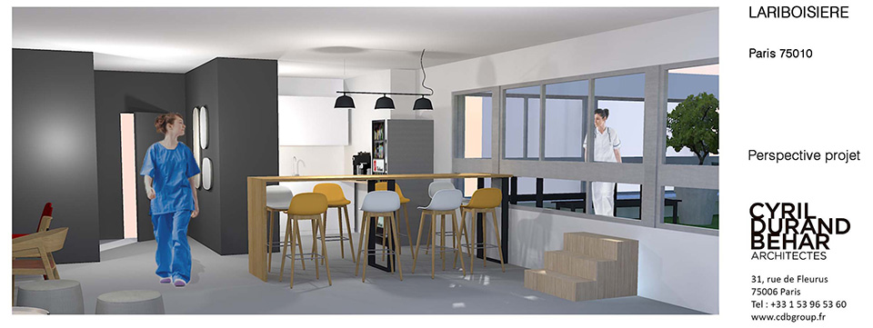 Toujours investie auprès de l’association Architectes Solidaires, toute l’équipe Cyril Durand Behar Architectes est ravie de vous présenter le projet de rénovation de la salle de repos du personnel soignant de l’hôpital Lariboisière à Paris (75).