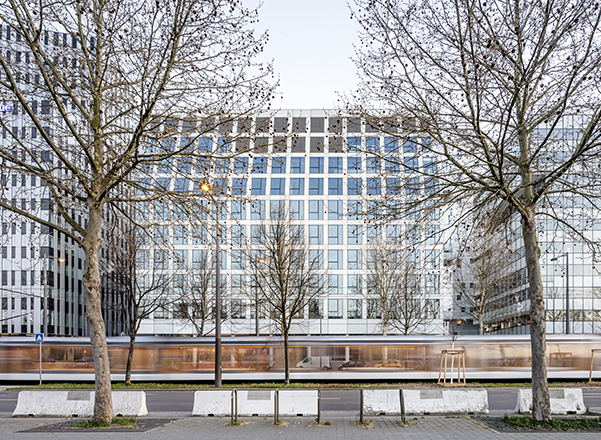 A proximité du Parlement européen, cet îlot fait l’objet d’un aménagement urbain avec la réalisation d’un front bâti tertiaire, des logements, des parkings et des espaces publics. L’ensemble de la programmation est posé sur un socle commun. L’agence HGA a la charge de concevoir un immeuble de bureau et le socle du lot 3. L’agence DeA architectes développe l’immeuble de logements.