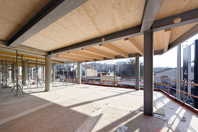 - Une structure en bois permettant de limiter la consommation de béton et ainsi réduire l’empreinte carbone et la consommation de sable lors de la phase de construction du bâtiment,