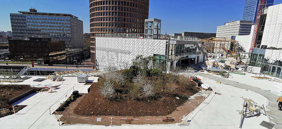 Ces 7 000 m2 de jardins sur la toiture ont été pensés pour former des ilots de fraicheur où chaque plantation permet de développer des corridors écologiques pour augmenter la biodiversité dans le quartier. |