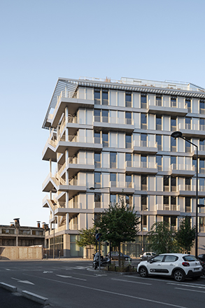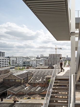 Situé au centre du quartier d’affaires de La Plaine Saint-Denis, cet immeuble de bureaux en bois massif de 7 étages a été pensé autour des idées de confort, de qualité d’usage et d’exigences spatiales. A chaque étage, les plateaux libres se prolongent par des espaces extérieurs larges et agréables. Cette série de terrasses en escalier ouvre le bâtiment sur le jardin.