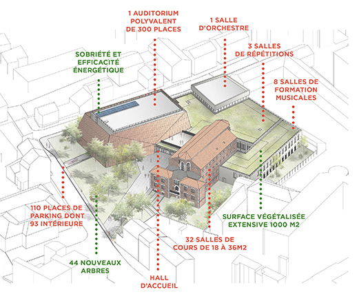 L’objectif du programme est d’accueillir les musiciens du Conservatoire et de l’Harmonie, ainsi que de mutualiser les moyens en proposant un pôle musical attractif pour l’agglomération meldoise.