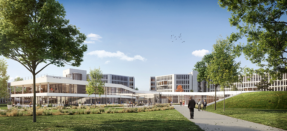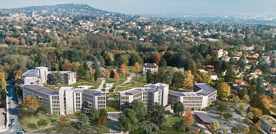 À l’issue d’un concours international d’architectes conduit en 2017 les cabinets d’architecture Archigroup et Atelier Thierry Roche & Associés sont retenus. Leur projet traduit ces partis-pris : création d’une nouvelle ouverture du site sur la ville de Champagne-au-Mont-d’Or, construction d’un cœur de vie (hub) central favorisant les échanges, réduction des consommations d’énergie et choix d’un mix énergétique vert, réappropriation du parc…