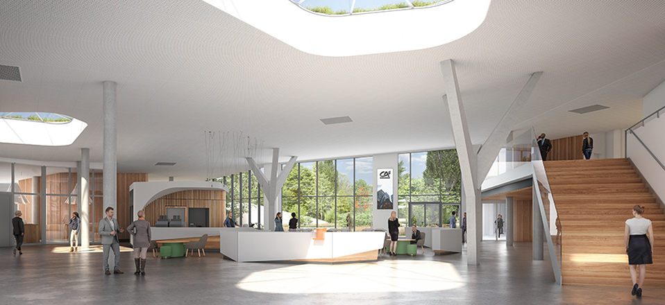 - donner une nouvelle image architecturale, conforme aux valeurs du Crédit Agricole : innovante, ouverte sur la ville, connectée aux valeurs humaines et à son environnement exceptionnel