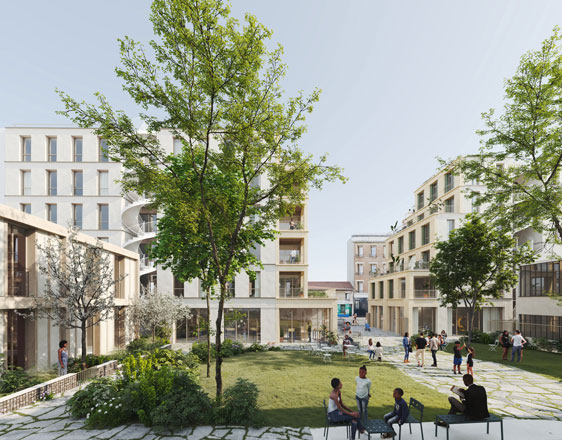 Maître d'ouvrage : Redman et sa Foncière solidaire Essentiel Bailleur social : I3F Architecte : DREAM Paysagiste : Topager Structure fluides-thermique : LM ingénieur HQE : Payet Assistants maîtrise d'ouvrage : Forest (urbanisme transitoire) et Remix (réemploi)