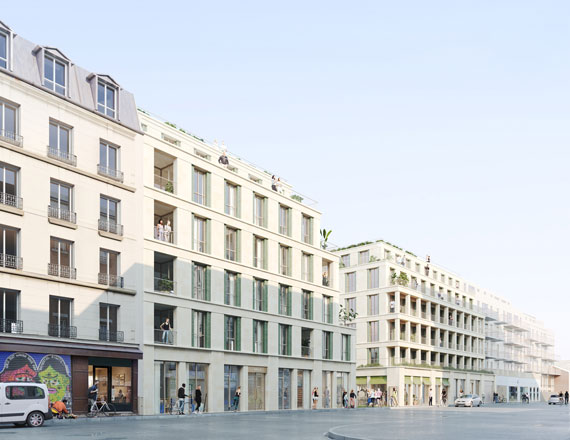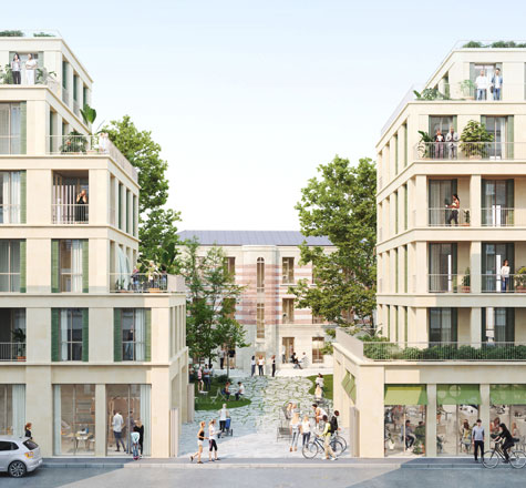 Reprenant les codes du quartier faubourien de Méhul qui mêlent activités et logements, ce projet offre plusieurs variations du R+1 au R+5, autour du bâtiment remarquable qui sera un véritable clin d'œil à l'histoire de l'usine Marchal ayant marqué le territoire.