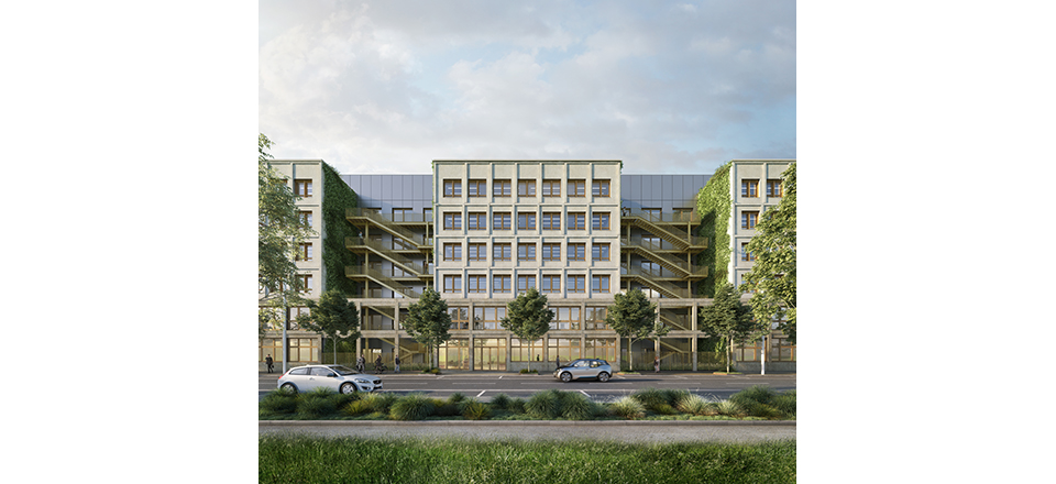 Le parti pris structurel est un système constructif constitué d'une façade porteuse en béton bas carbone préfabriquée, associée à des planchers en béton décarboné. Les plateaux restent libres et seront modifiables librement afin d'inscrire la construction dans la durée en facilitant la réversibilité des programmes, voire leur reconversion.