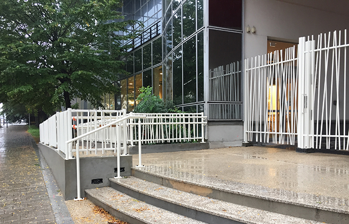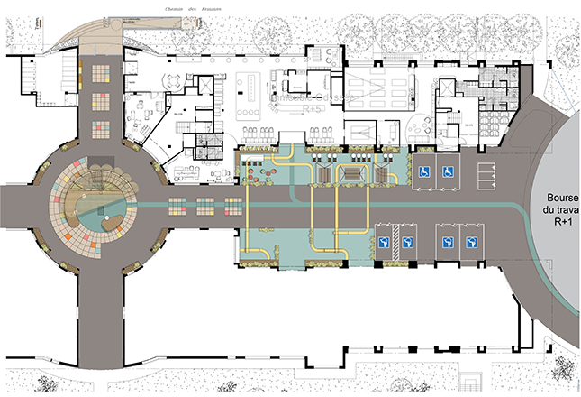 Le projet met en œuvre la rénovation des espaces du RDC avec un ancien RIE et des locaux divers dans un des bâtiments du site, la piétonisation du parking sur le parvis, l’accessibilité PMR et pompiers, la fermeture et sécurisation du site et la rénovation du parvis et des espaces verts existants.